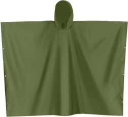 Pončo aprīkots ar četrām izturīgām sveķu pogām, kas nodrošina ātru un ērtu uzvilkšanu un novilkšanu.