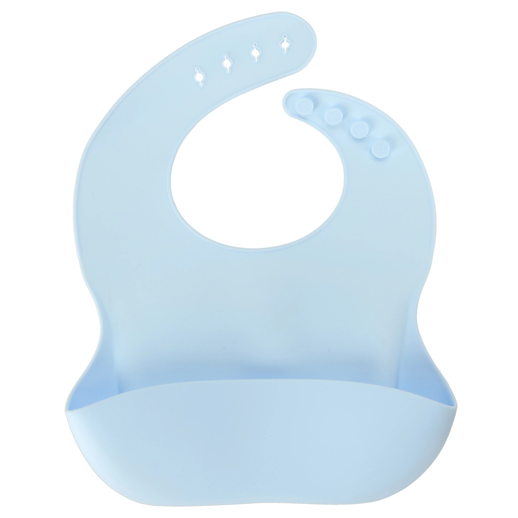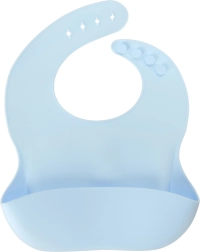 Mīksts silikona pav bib ar regulējamu aizdari un dziļu kabatu uzticami savāc drupačas un šķidrumus, pasargājot apģērbu katras maltītes laikā.