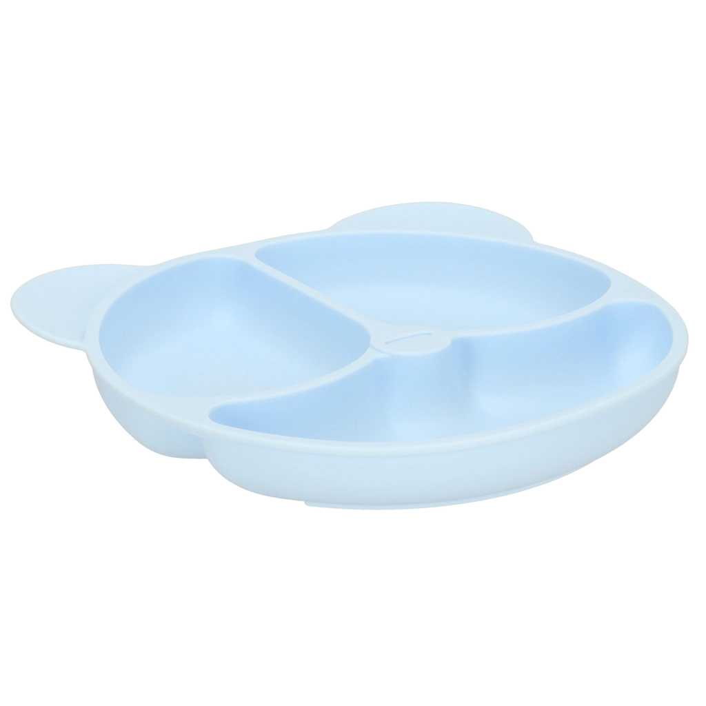 Šķīvis no pārtikas kvalitātes silikona ar vairākām nodalījumiem ļauj pārskatāmi pasniegt ēdienu un veicina patstāvīgu ēšanu. Rotaļīgā lācīša forma piesaista bērnu uzmanību.