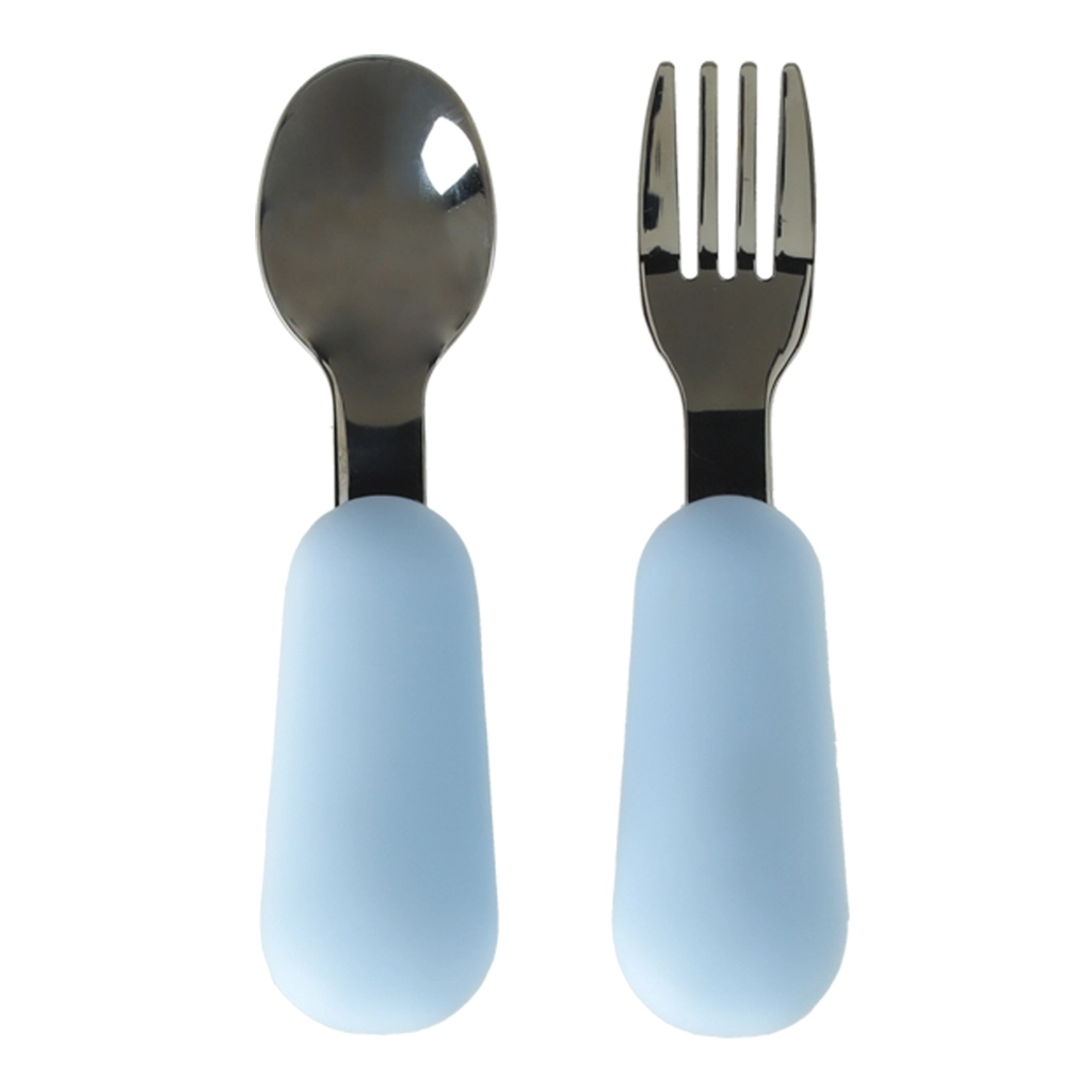 Karotītei un dakšiņai ir nerūsējoša tērauda gali un mīksti, pretizslīdes silikona rokturi, kas bērniem nodrošina ērtāku satvērienu un vienkāršu lietošanu.