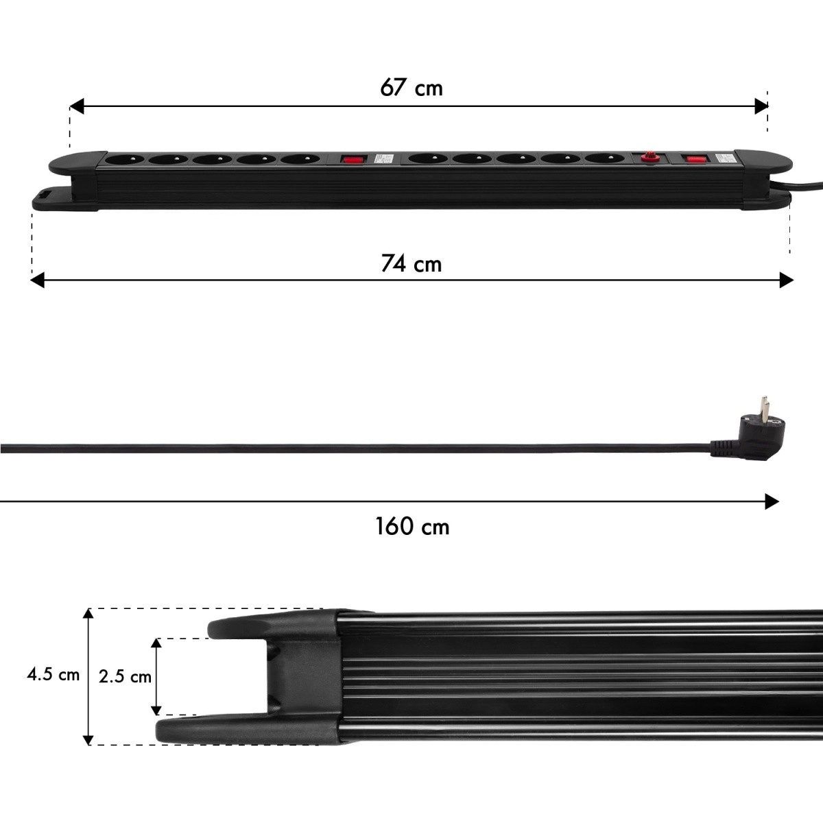 Praktisks MACLEAN ENERGY pagarinātājs ar līdz pat desmit ierīču barošanu vienlaikus piedāvā divus neatkarīgus slēdžus divām piecu rozetju grupām, automātisku drošinātāju pret pārslodzi un bērnu aizsardzību maksimālai drošībai. Ar maksimālo slodzi 3680 W, 1,5 m kabeli un iespēju piestiprināt pie sienas tas ir ideāli piemērots birojam, mājai un darbnīcai.