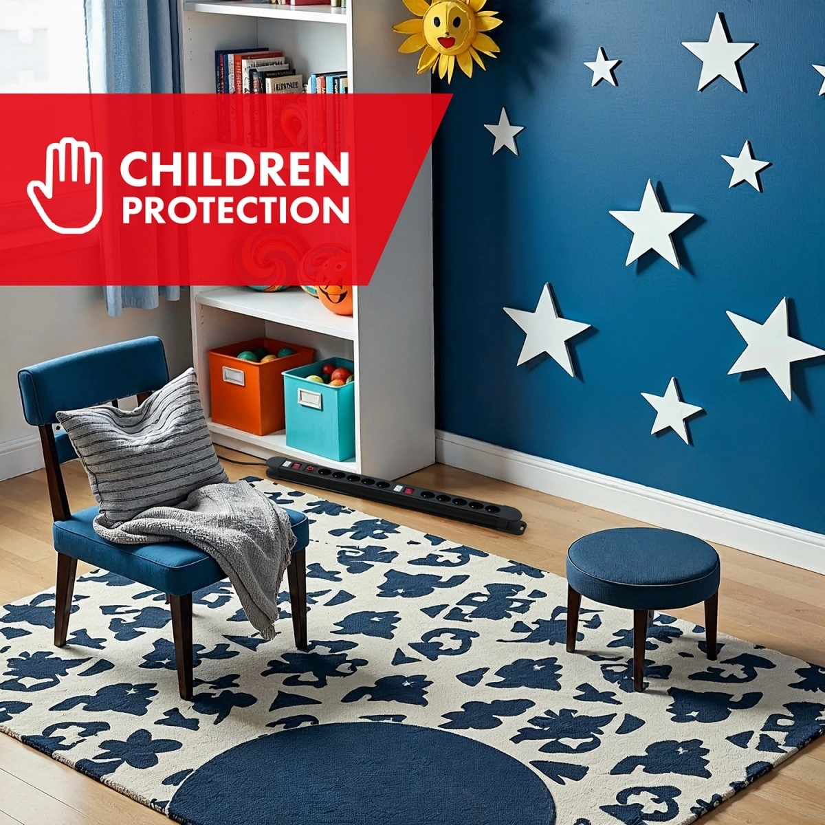 Iebūvēts automātiskais drošinātājs aizsargā pret pārslodzi un īssavienojumu, bērnu aizsardzība neļauj ievietot svešķermeņus rozetēs.