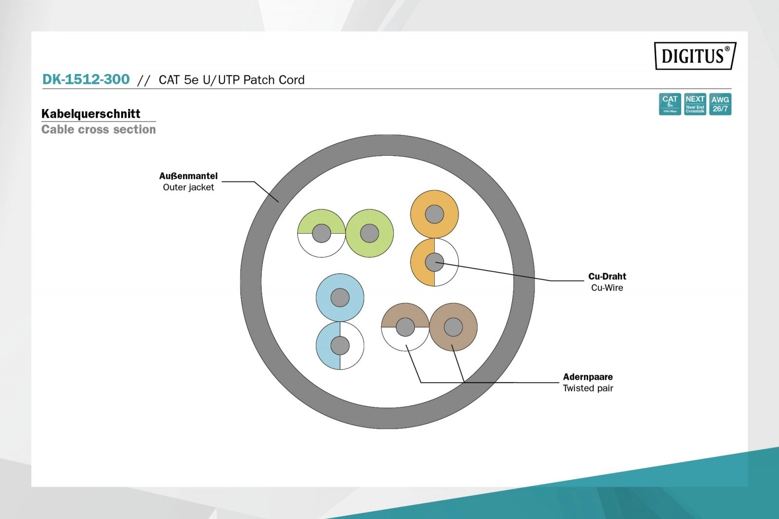 Daudzstieples vadītāji AWG 26/7 nodrošina labu lokanību ērtai instalācijai sadalēs vai birojos. PVC apvalks paredzēts iekštelpu lietošanai, bet pelēkais kabeļa izpildījums organiski iekļaujas jebkurā vidē. Pateicoties 30 m garumam, ērti pārvarēsiet arī garākas distances bez savienotāju nepieciešamības.