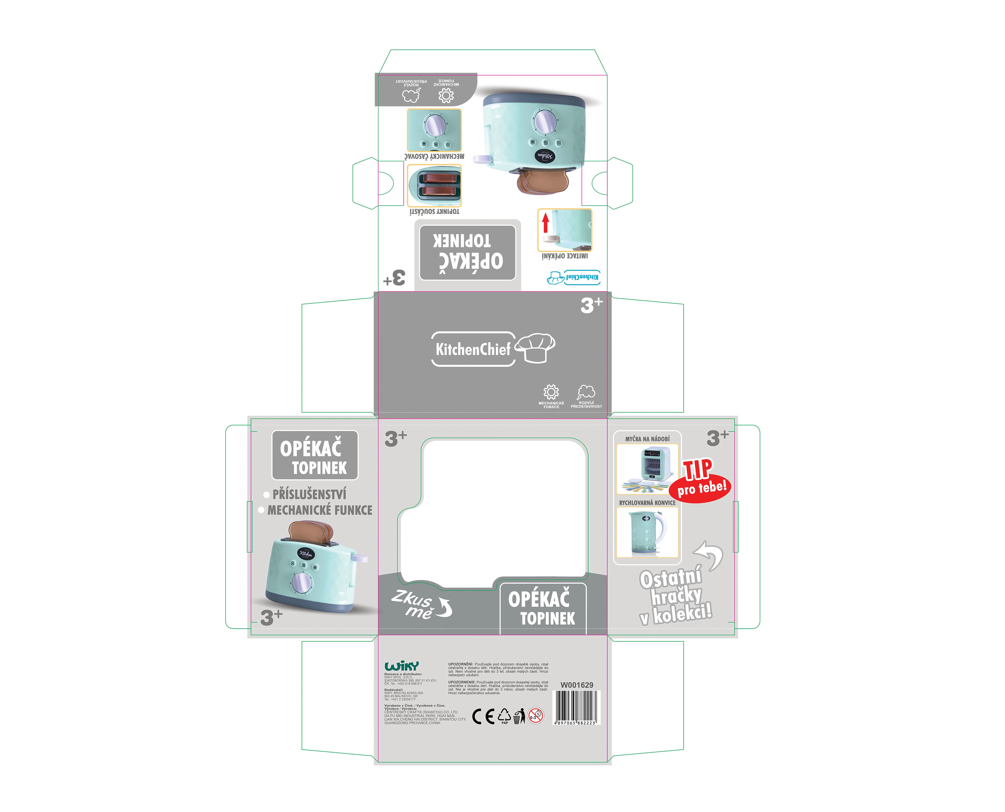Bērnu tosteris ir lielisks mazajiem palīgiem, kuri vēlas pagatavot brokastis kā pieaugušie. Vadība ir vienkārša – apbrūnināšanu sāk, nospiežot slēdzi labajā pusē, un var izvēlēties temperatūras pakāpi ideālai apbrūnināšanai. Spēli papildina reālistiskas skaņas, kas palielina jautrību un veicina iztēles attīstību.
