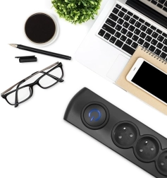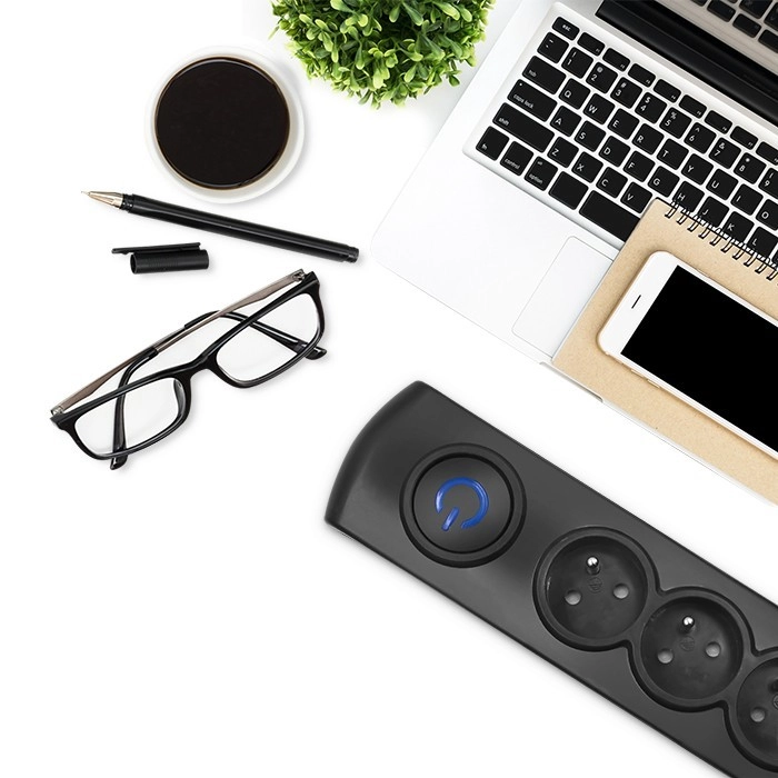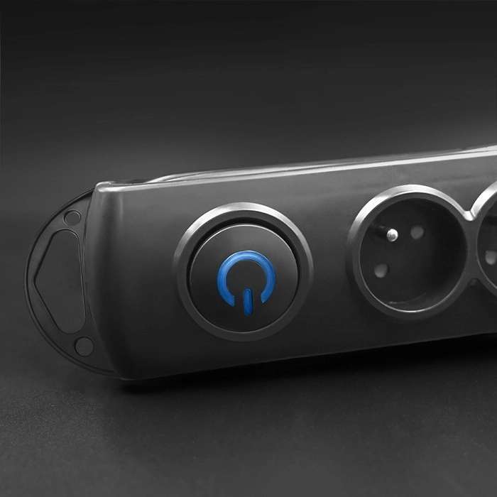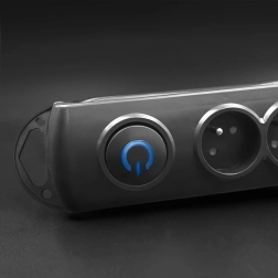 Liela, apgaismota poga ļauj ātri izslēgt visu sloksni bez pieliekšanās. Ideāli zem galda vai viesistabā – vienmēr skaidri redzēsiet, vai barošana ir ieslēgta.