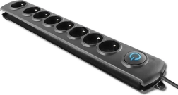 Vadība ir maksimāli ērta: apgaismotais kājas slēdzis Quick Switch skaidri parāda, kad barošana ir ieslēgta, un ļauj visu izslēgt ar vienu spiedienu. Elegantais melnais izskats lieliski saskan ar moderniem interjeriem, bet pārdomātā kabeļu vadība ļauj uztināt lieko kabeli ap sloksnes korpusu. Ir arī iespēja montēt pie mēbelēm vai sienas tīrai un drošai kabeļu pārvaldībai.