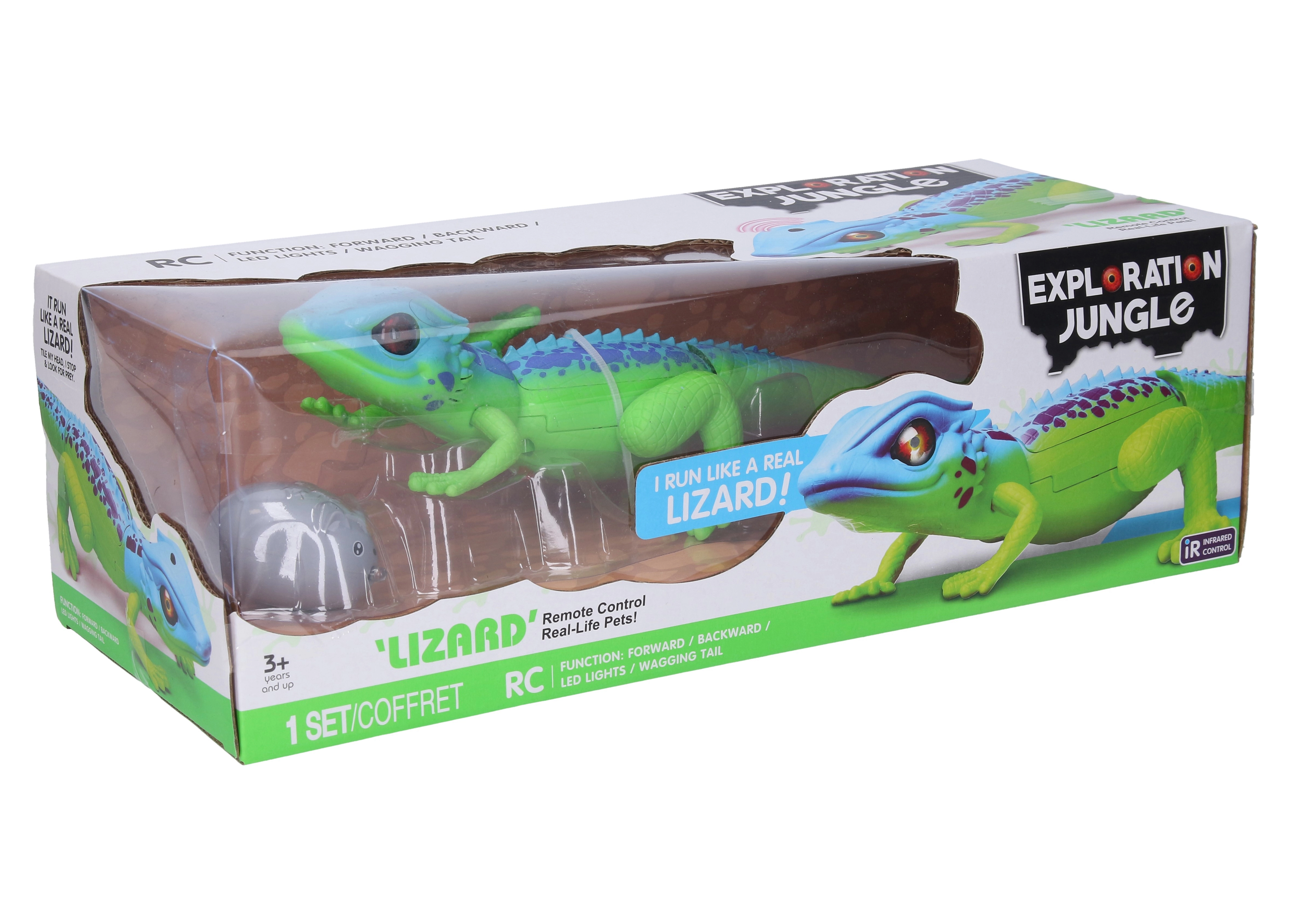 Izklaidējoša un reālistiska RC ķirzaka ar tālvadību ar garumu 35 cm aizraus gan bērnus, gan pieaugušos. Tā prot ātri skriet uz priekšu un atpakaļ, kustināt galvu un asti, un, pateicoties gudriem sensoriem, satverot zem galvas, nekustas. Satverot aiz astes, tā žigli vicojas kā īsta ķirzaka. Skaistas reālistiskas acis un dzīvs krāsojums nodrošina autentisku spēles pieredzi.
