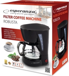 Kafijas automāts Esperanza Robusta sniedz ērtību un efektivitāti jūsu virtuvē. Tas ir aprīkots ar automātisko izslēgšanos 40 minūtes pēc cikla pabeigšanas, kas nodrošina drošību un enerģijas taupīšanu. Pateicoties pastāvīgajam, vairākkārt lietojamam filtram, tiek samazinātas ekspluatācijas izmaksas.
