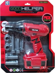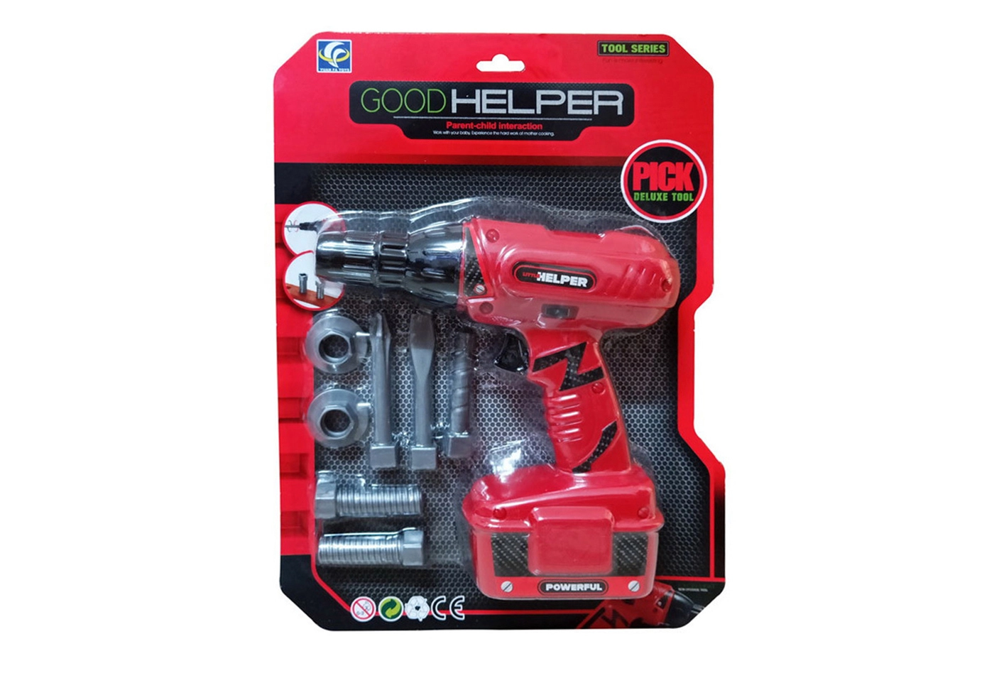 Šajā komplektā ir iekļauta reālistiska akumulatora urbjmašīna, kas ne tikai izskatās kā īsta, bet arī, nospiežot pogu, griežas un izdod autentiskas urbšanas skaņas. Komplektā ir maināmi urbji un skrūves, kas piešķir spēlei lielāku reālismu.