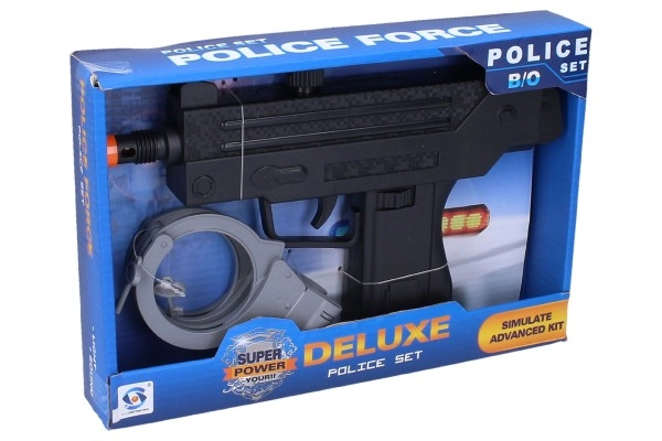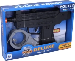Ar šo policijas automātu un rokudzelžiem jūsu bērns nonāks piedzīvojumu un akcijas pasaulē. Komplektā ietilpst automāts, kas izstaro gaismas un skaņas efektus, nodrošinot reālistisku spēles pieredzi. Iepakojumā ir arī rokudzelži, kas pilnveido spēli policistos.