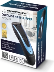 Bezvadu matu trimmeris ESPERANZA Apollo ātrai un ērtai matu griešanai mājās. Piedāvā līdz pat 24 griešanas garumiem diapazonā 1,5–24 mm, ergonomisku formu un vieglu vadību. Ietaupiet laiku un naudu un izveidojiet precīzu frizūru un ūsu/bārdas kopšanu jebkurā brīdī.
