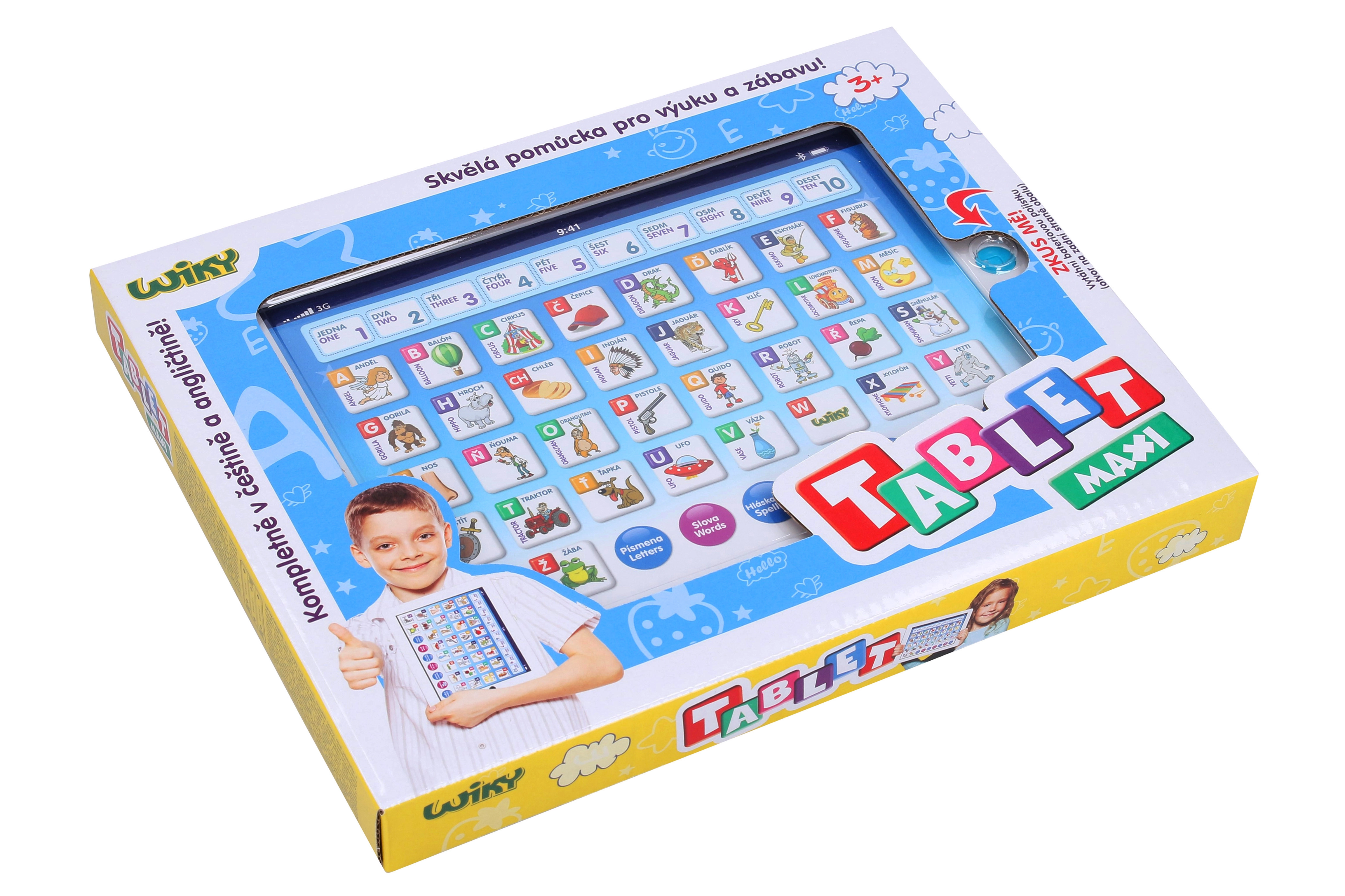 Bērnu planšete Wiky Maxi ir ideāls palīglīdzeklis rotaļīgai mācīšanai. Tā piedāvā aizraujošas funkcijas latviešu un angļu valodā un attīsta loģisko domāšanu, vārdu krājumu un pamata skaitīšanas prasmes. Pateicoties pārskatāmam izkārtojumam un skaņas efektiem, tā dabiski motivē bērnus atklāšanai.