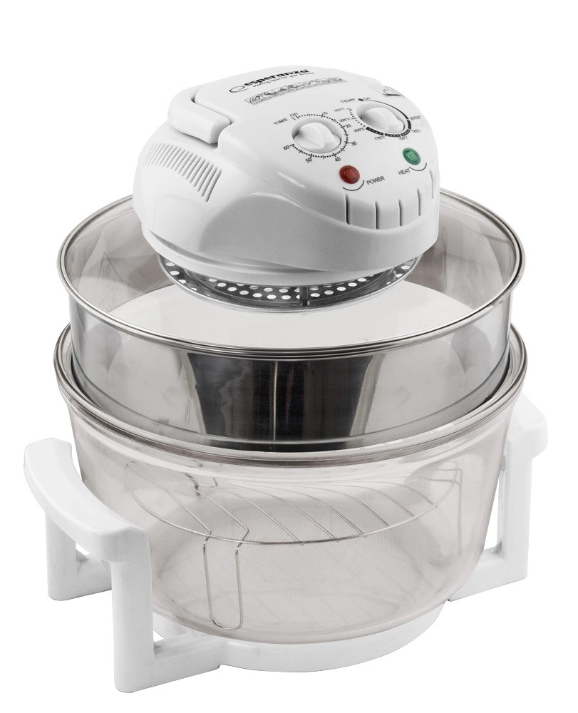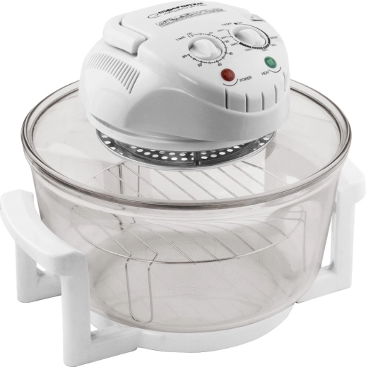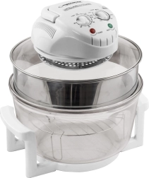 Izbaudiet galda halogēna krāsns ērtības, kas apvieno infrasarkano starojumu ar karstā gaisa plūsmu. Caurspīdīgā stikla bļoda ļauj kontrolēt gatavošanās procesu, savukārt ventilators nodrošina vienmērīgu apcepšanu bez vajadzības ēdienu apgriezt.