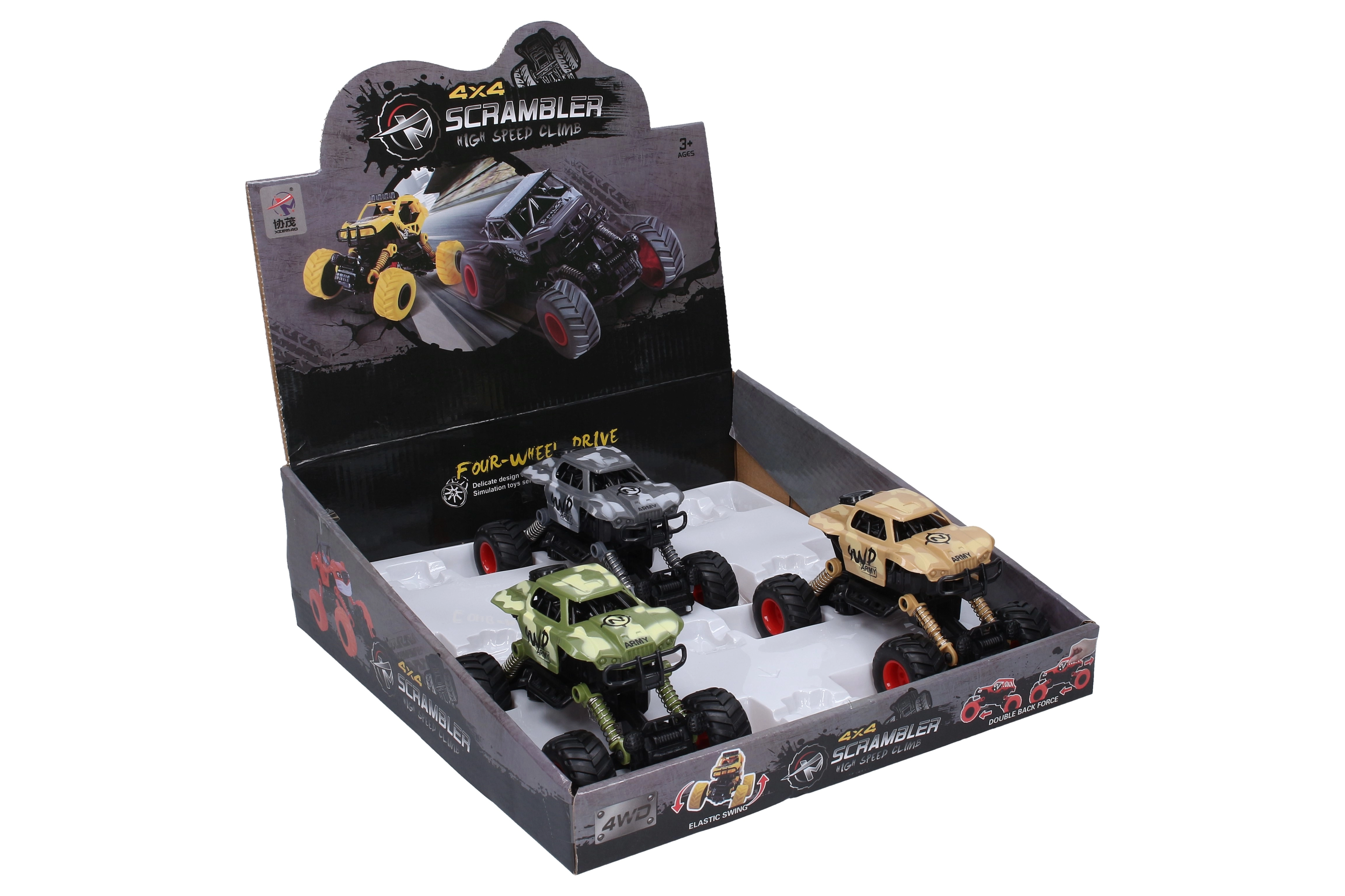 Izklaidējoša bezceļa mašīna ar uzvelkamu piedziņu dinamiskai braukšanai jebkurā reljefā. Piedāvā izturīgu konstrukciju, funkcionālu piekari un kompaktus izmērus 15 × 9 × 9,3 cm. Pieejama 3 krāsu variantos – zaļa, dzeltena, pelēka.
