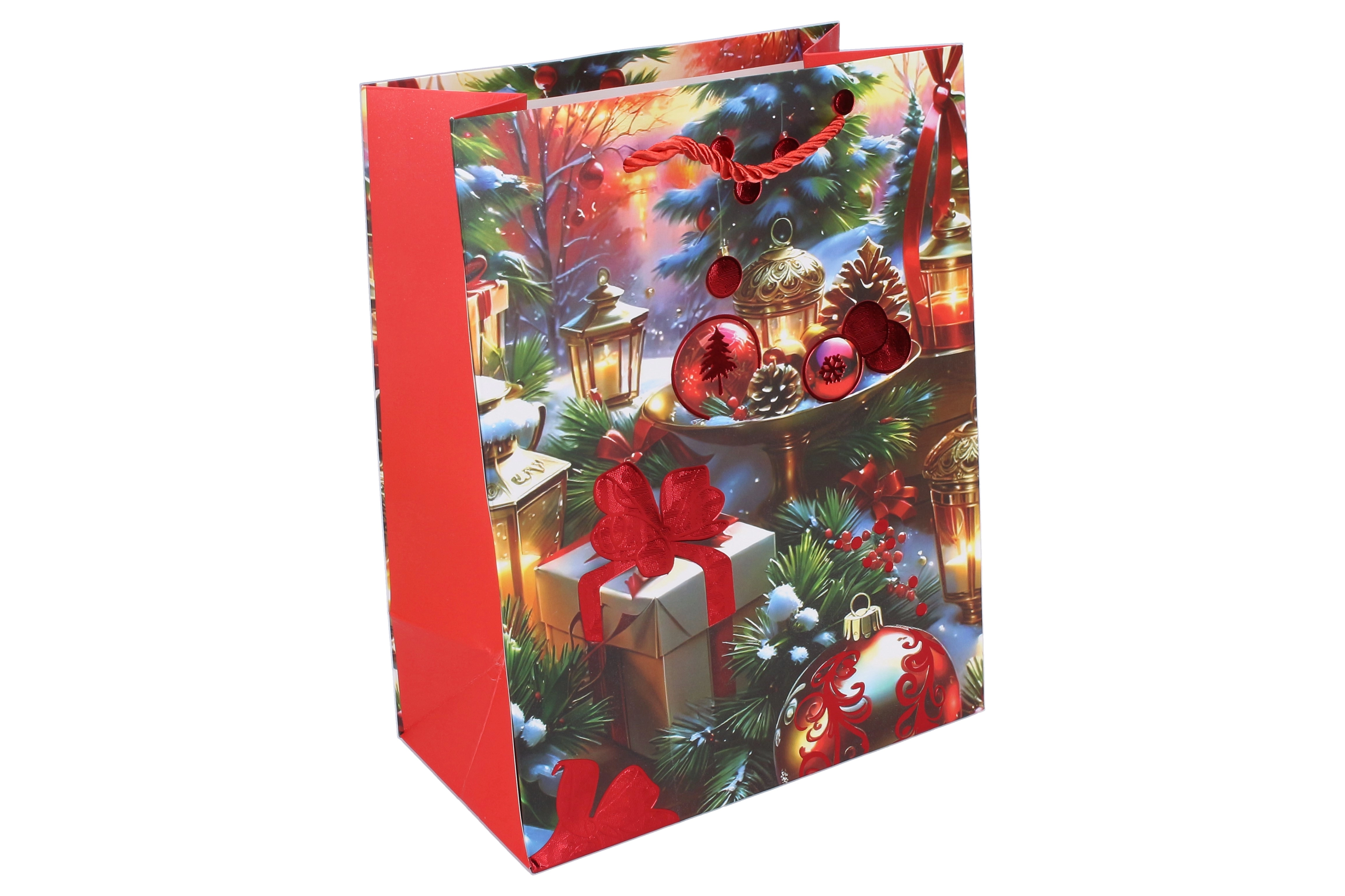 Stilīgs dāvanu maisiņš L izmērā ar izmēriem 32 × 41,5 × 12 cm ir ideāli piemērots lielāku dāvanu iepakošanai. Piedāvā ziemassvētku motīvu, izturīgu izpildījumu un ērtu pārnēsāšanu. Pieejams 4 motīvu variantos perfektai svētku atmosfērai.