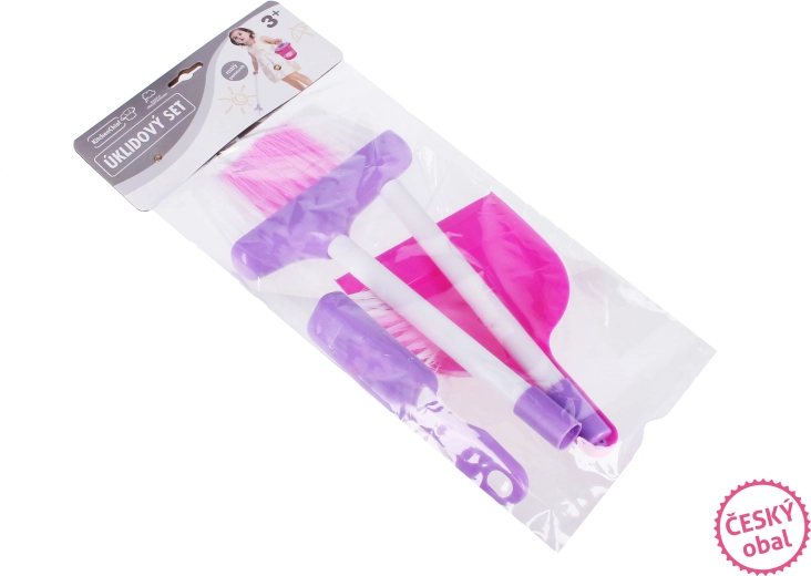 Praktisks bērnu uzkopšanas komplekts sastāv no 3 daļām – liekšķeres, birstītes un saliekamā grīdas birstes. Izgatavots no izturīga plastmasas rozā-baltā krāsā, ideāli piemērots mājas spēlēm un smalkās motorikas attīstībai. Saliekamā birste viegli ietilpst mazākā rotaļlietu kastē.
