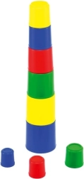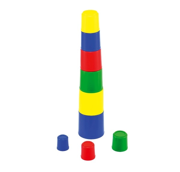 Katrai krūzītei ir atšķirīga krāsa un izmērs. Būvējot torni vai ievietojot tās vienu otrā, bērni apgūst krāsu atšķiršanu, kārtošanu pēc izmēra un secīgumu.