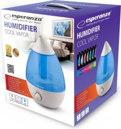 Mūsdienīgs ultraskaņas gaisa mitrinātājs Esperanza COOL VAPOR nodrošina optimālu mitrumu telpā un vienlaikus rada patīkamu atmosfēru, pateicoties 7 krāsu LED apgaismojumam. Piedāvā klusu darbību, kas ir piemērota guļamistabai un bērnu istabai, tvaika intensitātes regulēšanu un lielu 2,6 l tvertni līdz pat 8,5 stundu nepārtrauktai darbībai. Drošai lietošanai tas ir aprīkots ar automātisku izslēgšanos un ūdens trūkuma trauksmi.