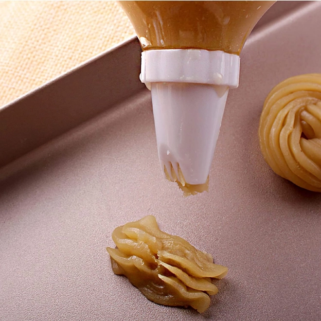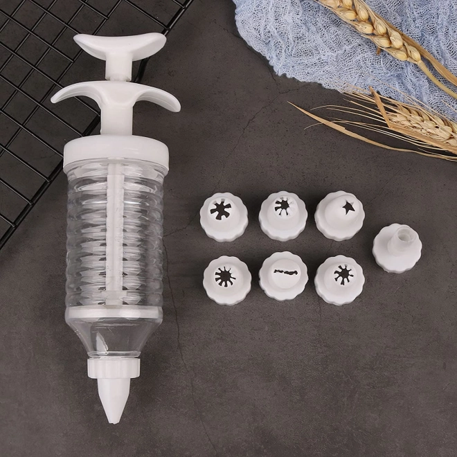 Gala efekts ir fantastisks. Ar dekorēšanas šļirci jūs pārvērtīsiet parastas kūkas un desertus par skaisti noformētiem un gludiem gardumiem. Šī dekorēšanas šļirce ir piemērota gan profesionālam konditoram, gan amatierim. Iepakojumā ir 8 uzgaļi dažādiem dekorēšanas stiliem. Tā darbojas kā injekcijas šļirce, tāpēc nekāda nekārtība nedraud. Ar šo šļirci dekorēšana ies no rokas.