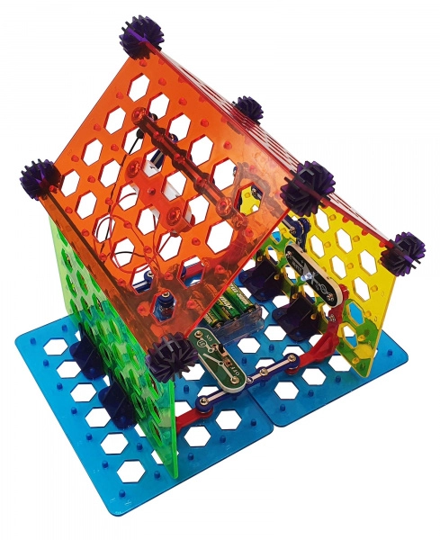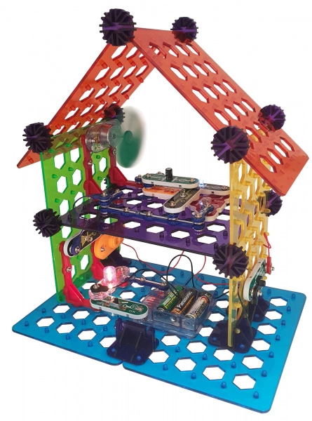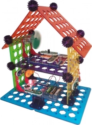 Komplekts BOFFIN II Mana māja ir ideāli piemērots bērniem no 8 gadu vecuma, kuri vēlas saprast elektrības un gudrās mājas principus. Pamatu veido perforēta plate, uz kuras detaļas vienkārši pievienojas – bez lodēšanas, droši un ar tūlītēju rezultātu. Uzbūvējiet apgaismojumu, signalizāciju, divstāvu māju, vējdzirnavas un ballīšu māju un pārbaudiet darbību pēc pievienotajām shēmām.