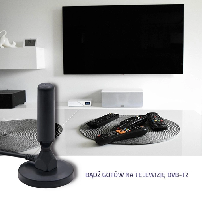 Kompakta iekštelpu antena uztverei ar DVB‑T2 ir ideāli piemērota mājām, birojam un ceļojumiem. Tā nodrošina vienkāršu pieslēgšanu caur TV savienotāju un stabilu novietojumu, pateicoties magnētiskajai pamatnei – lieliski piemērota automašīnām, kravas auto un kemperiem bez nepieciešamības mainīt televizoru.