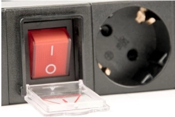 Integrēts šūpuļslēdzis ar caurspīdīgu aizsargvāciņu pasargā no nejaušas izslēgšanas un ļauj ātri atslēgt barošanu.