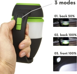 Lampu var izmantot kā kempinga lampu, galda lampu vai lukturīti, kas padara to par ideālu pavadoni jebkurām āra aktivitātēm.
