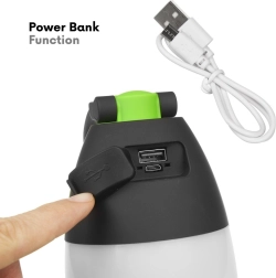 Powerbank funkcija ļauj uzlādēt tālruni, viedtālruni vai planšeti izmantojot lampas USB portu, kas piešķir papildu ērtību un lietderību.