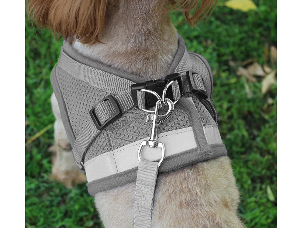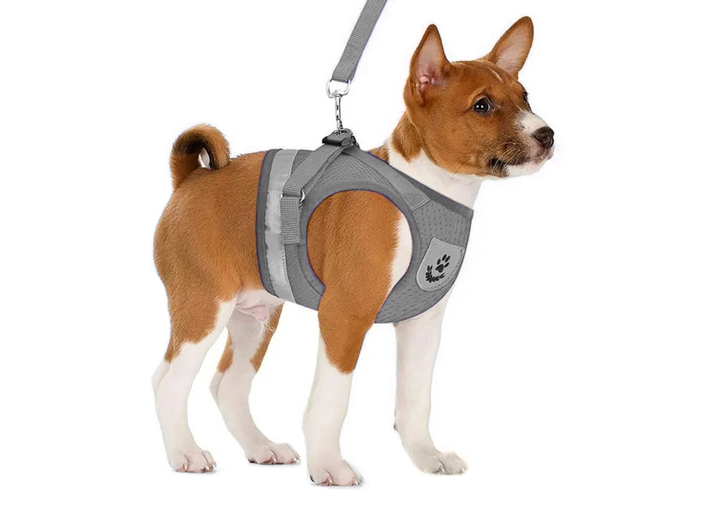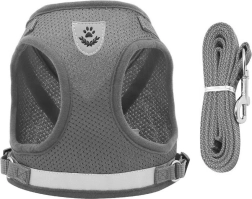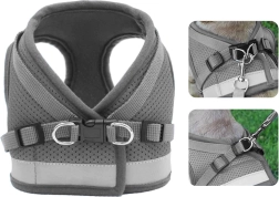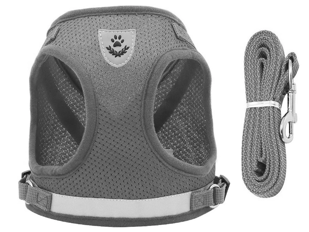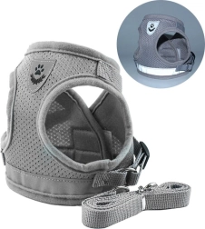 Bezspiediena iejūgs pelēkā krāsā ir paredzēts suņiem, kaķiem un trušiem. Viegls, elpojošs audums ar mīkstu polsterējumu nodrošina komfortu bez noberzumiem un ļauj ādai elpot. Regulējamās siksnas viegli pielāgojamas dzīvnieka ķermenim, lai iejūgs sēdētu droši un neierobežotu kustības.