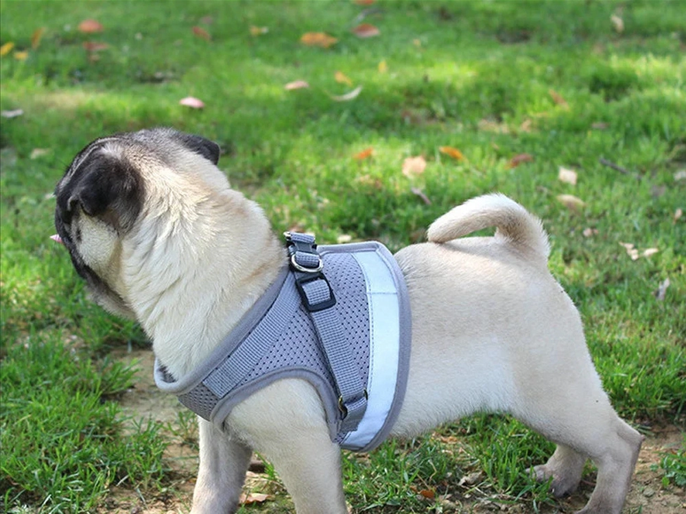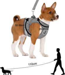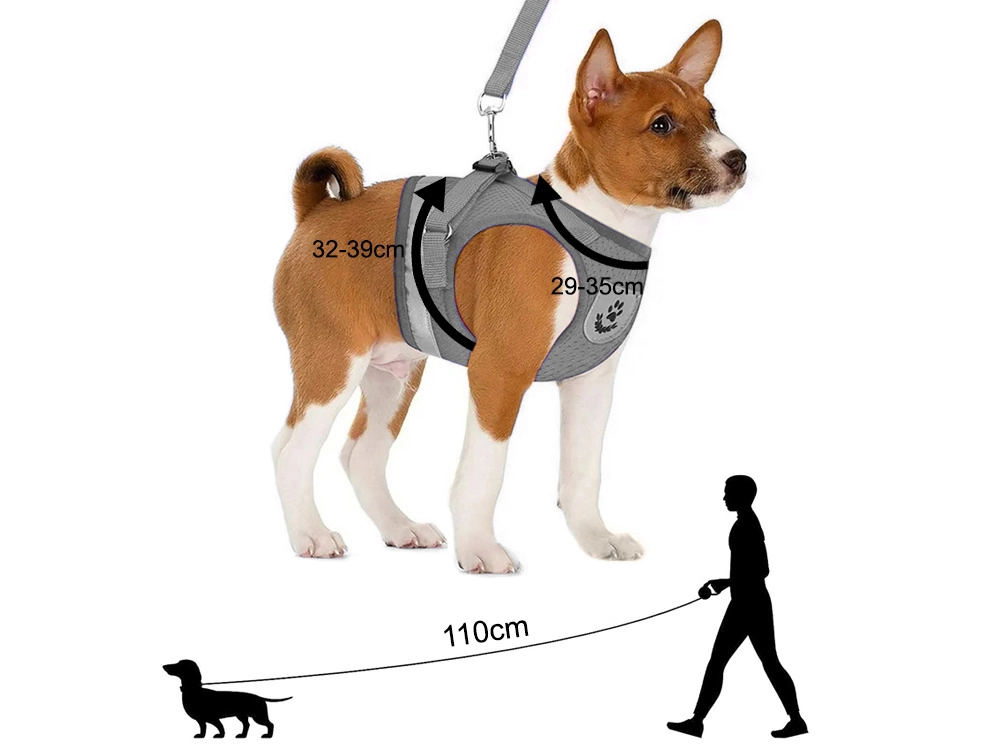 Ērts un drošs M izmēra mājdzīvnieku iejūgs, kas vienmērīgi sadala vilkmi bez spiediena uz kaklu. Pateicoties elpojošam sietam, atstarojošiem elementiem un noņemamai pavadai ar metāla karabīni, tas nodrošina maksimālu komfortu un labāku kontroli pastaigu laikā.