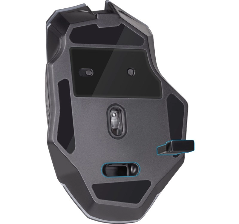 Izteiksmīgs RGB apgaismojums ar “cracked” efektu piešķir jūsu komplektācijai individuālu stilu. Pateicoties 8 pogām, galvenās funkcijas vienmēr ir pa rokai un tās var pielāgot jūsu vajadzībām. Uzticams bezvadu savienojums ar USB dongli samazina aizturi un uztur galdu brīvu no vadiem.