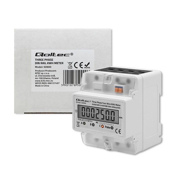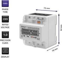 Ieguldījums enerģijas patēriņa ietaupījumā un kontrolē — Šis digitālais skaitītājs ļauj reāllaikā uzraudzīt trīsfāžu ierīču elektroenerģijas patēriņu, kas darbināmas ar maiņstrāvu 230 V un frekvenci 50 Hz. Ierīce ir aprīkota ar LED indikatoru, kas signalizē enerģijas patēriņu, un LCD displeju, kas rāda patērētās enerģijas vērtības.