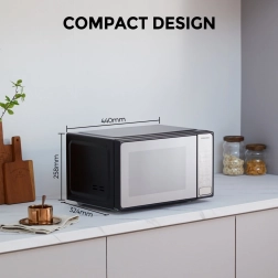 Atklājiet vieglu ikdienas gatavošanu ar Toshiba mikroviļņu krāsni, kas, pateicoties kompaktajiem izmēriem, iederas lielākajā daļā virtuvi. Mūsdienīgais spoguļefekta izpildījums stilīgi papildina interjeru, bet pārskatāmais skārienpanelis nodrošina ātru piekļuvi iecienītākajām funkcijām.