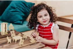 Katra detaļa ir izgatavota no dabiska koka, kas nodrošina ilgmužību un kvalitāti. Komplektā ir arī smilšpapīrs drošai un gludai apdarei.