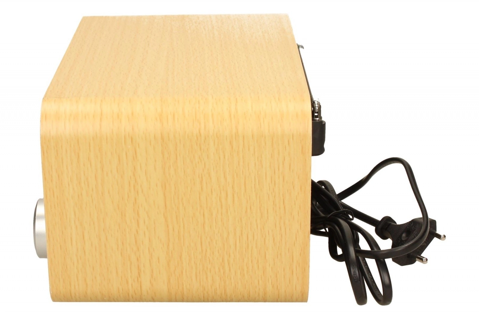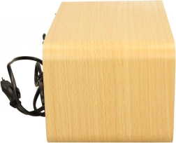 Koka korpuss veicina patīkamāku balss un mūzikas skanējumu, bet barošana no tīkla nodrošina stabilu klausīšanos bez bateriju maiņas.