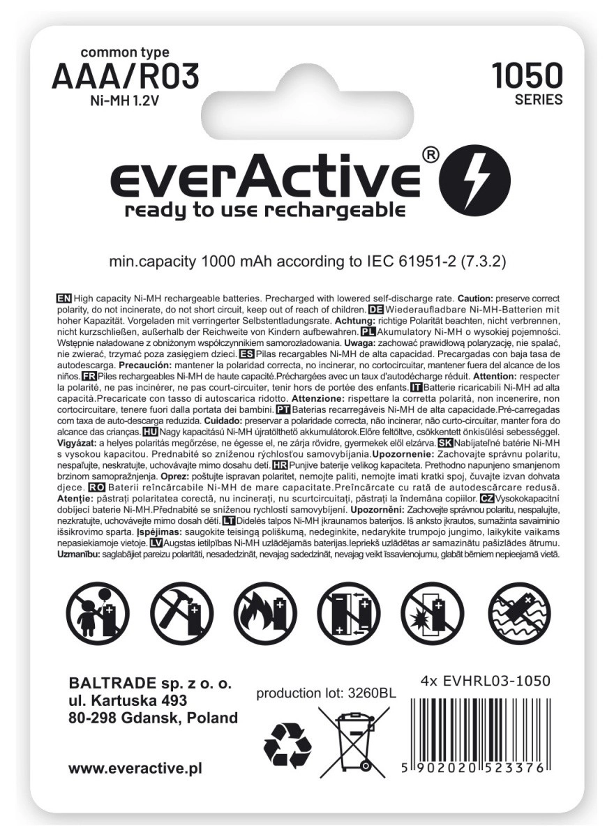 - Saderība: pilnvērtīga AAA/R03 bateriju nomaiņa ierīcēs ar zemāku strāvas patēriņu.