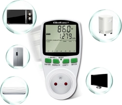 Ievadiet cenu par kWh un sekojiet līdzi, cik jums iekārta patiesībā izmaksā ekspluatācijā. Mērītājs rāda aktuālo jaudu, uzkrāto enerģiju (kWh) un arī aprēķinātās izmaksas.
