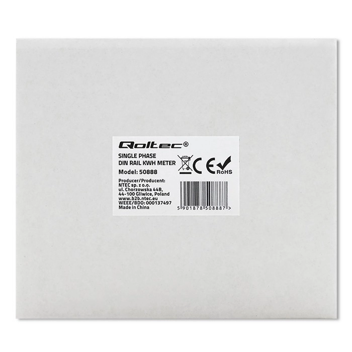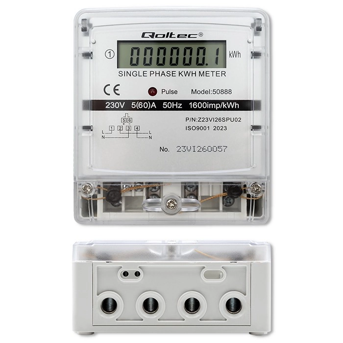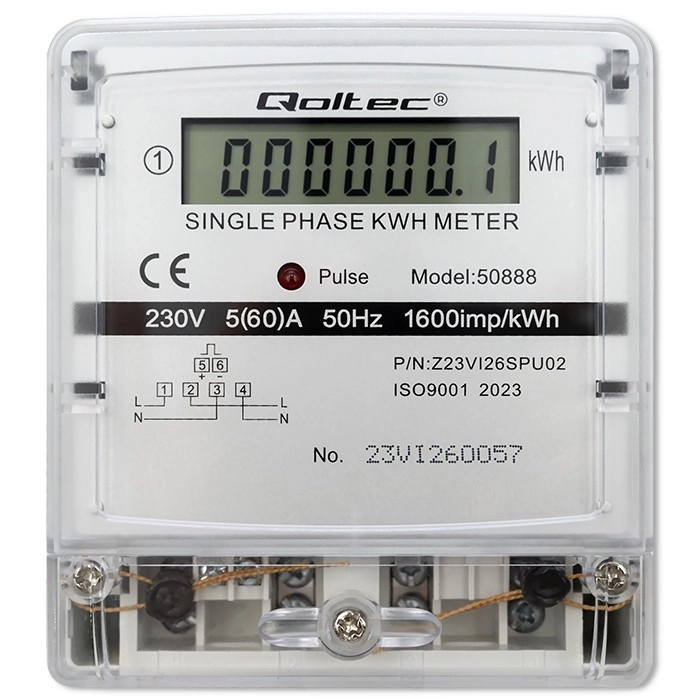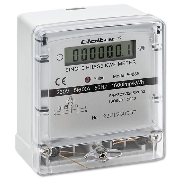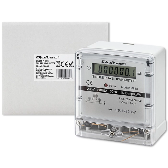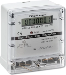 Šis Qoltec vienfāzes elektroenerģijas skaitītājs ir ideāli piemērots enerģijas patēriņa uzraudzībai gan mājokļos, gan komerciālās telpās. Tas nodrošina vienkāršu uzstādīšanu un darbību, pateicoties kompaktajam dizainam un precīziem mērījumiem. LCD displejs skaidri attēlo enerģijas patēriņu kilovatstundās (kWh).