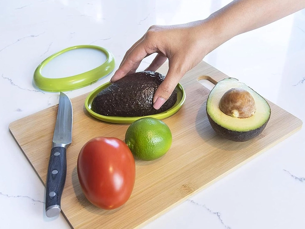 Šis praktiskais trauks paildzina augļu un dārzeņu svaigumu, pateicoties stingram, bet elastīgam silikona vākam, kas cieši piekļaujas produktu virsmai. Tas ierobežo gaisa piekļuvi, saglabā mitrumu un aromātu iekšpusē un palīdz novērst izžūšanu vai bojāšanos. Piemērots avokado pusītēm, citrusaugļiem, tomātiem, sīpoliem un citiem gabaliņiem, ko vēlaties turēt pa rokai.