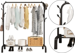 - Brīvi stāvošs apģērbu pakaramais ar apavu plauktu