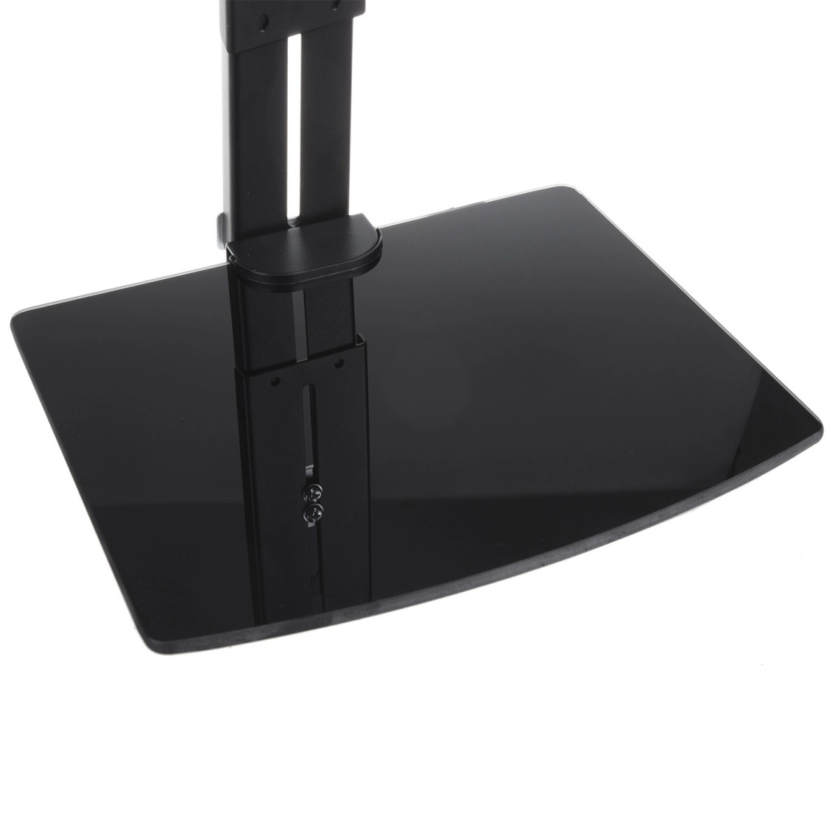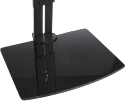 Integrētais stikla plaukts ērti ievieto Blu‑ray atskaņotāju, set‑top kasti, spēļu konsoli vai planšetdatoru un palīdz uzturēt kabeļus un piederumus pārskatāmi vienuviet.