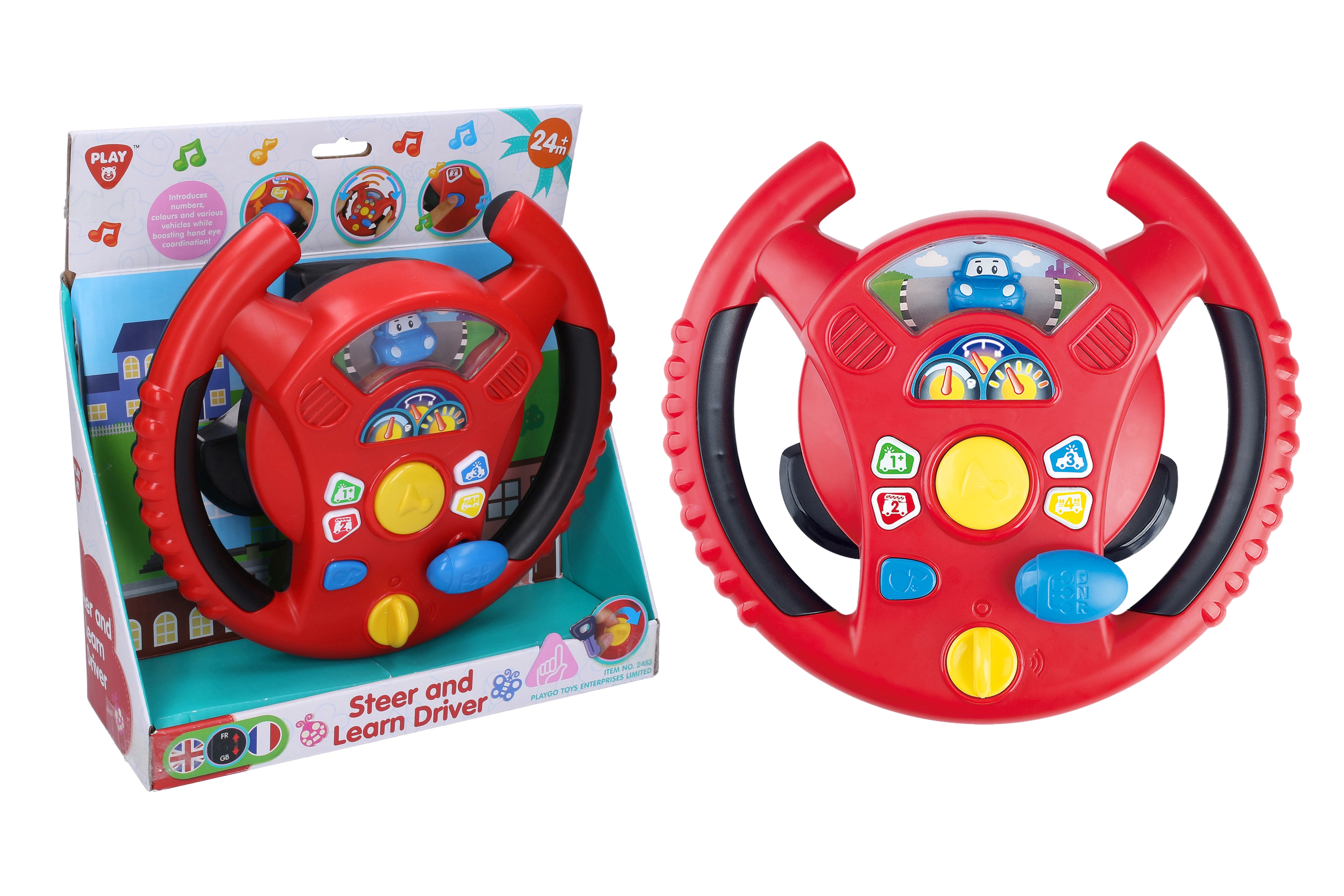 Interaktīvais Playgo stūres rats bērniem sniedz aizraujošu braukšanas spēli mini pilsētā. Rotējošais slēdzis stūres rata apakšdaļā kalpo ieslēgšanai, vidū atrodas taure, pa labi – pārnesumu svira braukšanas skaņām, bet uz stūres loka – mazas pogas ar toņiem un melodijām. Bērni izbaudīs reālistiskus efektus, kas atgādina īstu automašīnu, vienlaikus attīstot koordināciju un iztēli.