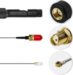 - SMA savienotājs nodrošina vienkāršu pievienošanu maršrutētājiem un tīkla kartēm.