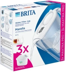 BRITA Marella krūkas kopējais tilpums ir 2,4 l, un vienā uzpildē tā nodrošina apmēram 1,4 l filtrēta ūdens. Pateicoties slaidajai formai, krūka ietilpst ledusskapja durvju nodalījumā, vāciņš ar atveramu atloku ļauj uzpildīt ar vienu roku, bet BRITA Memo indikators atgādinās par kasetnes maiņu ik pēc 4 nedēļām. Lielāko daļu detaļu var mazgāt trauku mazgājamajā mašīnā (izņemot vāku ar elektroniku).