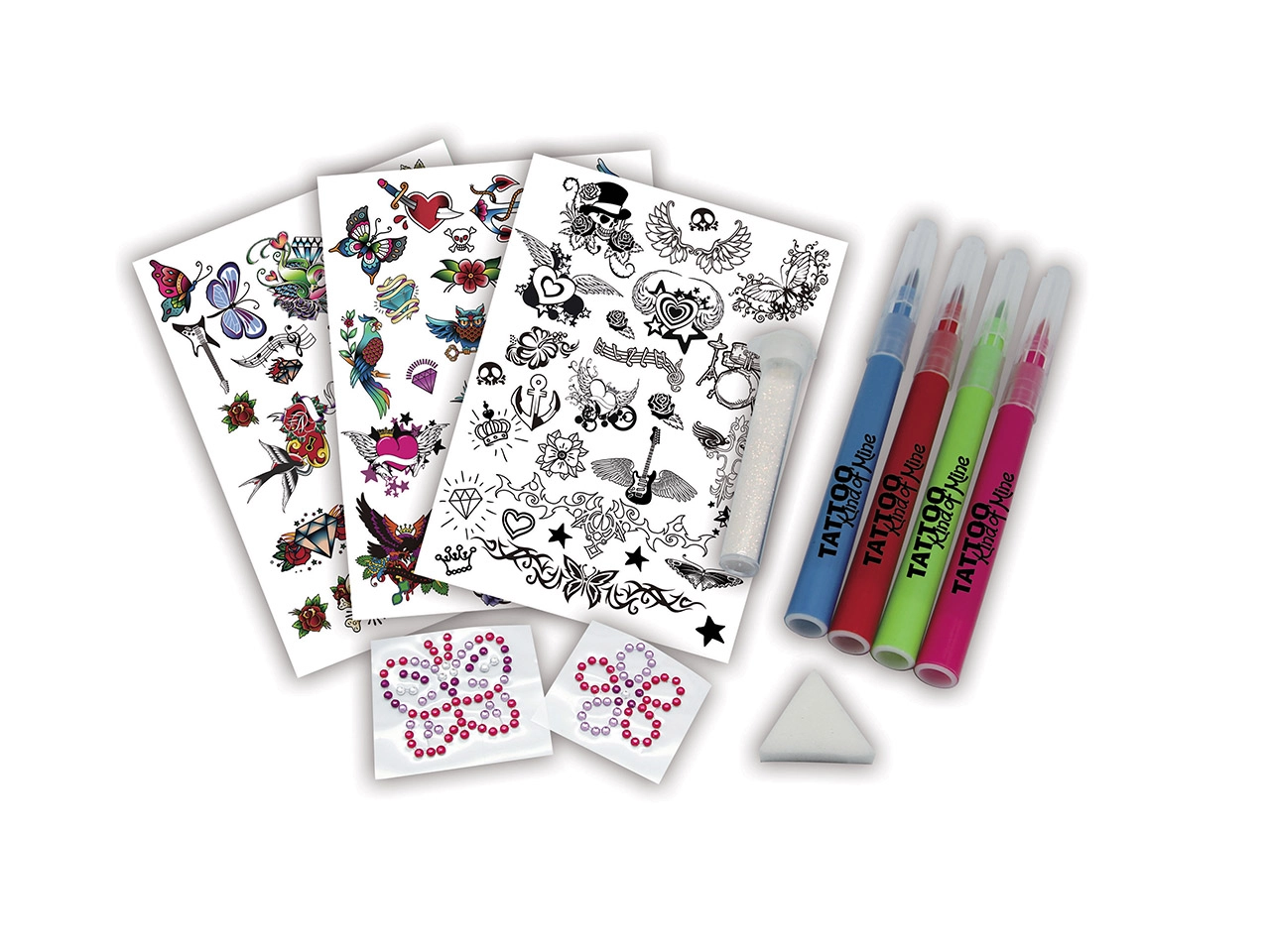 Ar šo tetovēšanas komplektu bērni var droši eksperimentēt ar dažādiem dizainiem un krāsām. Komplekts ir piemērots bērniem no 3 gadu vecuma un piedāvā nebeidzamas radošuma iespējas.