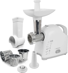 Universāla gaļas mašīna ar rīvi ESPERANZA Wellington apvieno augstu jaudu un praktiskumu jebkurai virtuvei. Pateicoties motoram ar jaudu līdz 2200 W, jūs viegli samaļat gaļu un citas sastāvdaļas, bet ar trim malšanas diskiem panāksiet vēlamo rupjumu. Maināmie uzgaļi ļauj gatavot desas un kebab/kebbe, savukārt trīs cilindriskās rīves ātri apstrādā augļus, dārzeņus, sieru, šokolādi vai riekstus. Metāla gliemežpiedziņa, nerūsējošā tērauda nazis un pretslīdes kājiņas nodrošina ilgu kalpošanas laiku un drošu darbību.