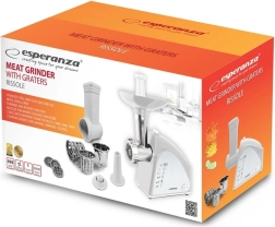 Daudzfunkcionālā elektriskā gaļas mašīna ar rīvi Esperanza RISSOLE ir uzticams palīgs ikvienā virtuvē. Tā viegli samaļ gaļu un citus produktus, bet ar uzgaļu komplektu sagatavos arī mājas desas vai kebbe. Rīves uzgalis tiek galā ar augļiem, dārzeņiem, cieto sieru, šokolādi un riekstiem. Stabilu darbību nodrošina pretizslīdes kājiņas.