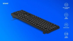 Praktiska vadu tastatūra SAVIO ikdienas darbam un izklaidei piedāvā uzticamu USB pieslēgumu, pilnu ASV izkārtojumu ar 104 taustiņiem, ilgu kalpošanas laiku līdz 5 miljoniem nospiešanu un plug & play bez draiveriem. Pateicoties šauram profilam un izturīgam, vieglam korpusam, tā der jebkuram galdam.