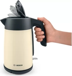 Izbaudiet ērtības ar šo Bosch ātrvārāmo tējkannu, kas, pateicoties ūdens līmeņa indikatoram, ļauj uzvārīt tieši tik daudz ūdens, cik nepieciešams. Ergonomiskā forma nodrošina ērtu liešanu bez šļakatām, ko novērtēsiet ikdienas lietošanā.