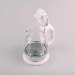 Ērtu piekļuvi tējkannas iekšpusei nodrošina vāka atvēršanas poga, bet ūdens līmeņa indikators atvieglo ūdens daudzuma kontroli tvertnē. Zilais apgaismojums norāda ierīces darbību un piešķir tai mūsdienīgu izskatu.